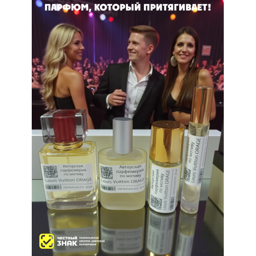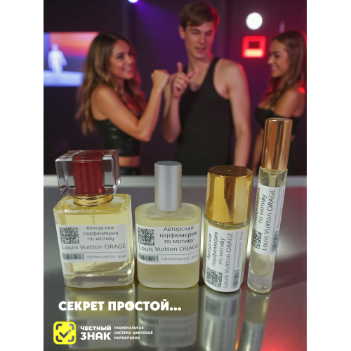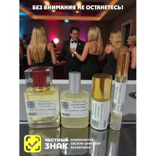 В верхнем аккорде парфюма звучит цитрусовая свежесть бергамотаи и грейпфрута, напоминающая вспышку молнии. Оригинальная композиция из элегантного ириса и освежающего ветивера дополнена яркими, как молния, нотами пачулей. Элегантные ноты ириса укрощают интенсивный аромат пачули. Свежесть гедиона, пряные искорки перца и белый мускус придают композиции объем и атмосферность. Louis Vuitton Orage — дерзкий, полный жизни аромат, который хочется вдыхать бесконечно.